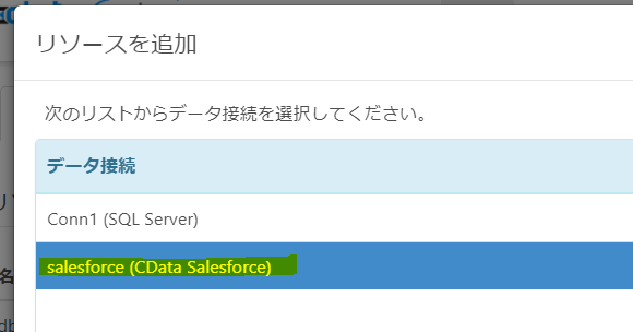 データソースに先ほど定義したSalesforce.comへの接続を選択します。
