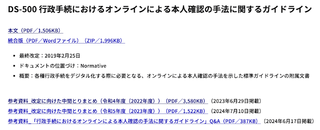 DS-500と言っても行政マニアにしか通じないんだろうなぁ、と思いつつ私も少しだけお手伝いさせていただいておりました「行政手続きにおけるオンラインによる本人確認の手法に関するガイドライン」の令和5年度の中間とりまとめが公開されました。